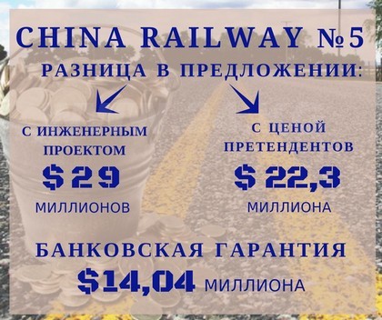 Министерству транспорта и дорог поручили начать контрактные переговоры с China Railway № 5. Чтобы исключить риск неисполнения контракта, у откровенно лоббируемого претендента затребовали повышенную банковскую гарантию — 20 процентов от суммы проекта. Минтрансу пришлось соглашаться, несмотря на то, что гарантия в $14 с лишним миллионов все равно не покрывает все риски.