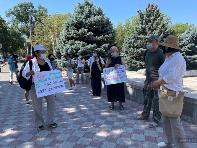 Rally against censorship and Gulshat Asylbayeva’s bill on protection from false and inaccurate information is held near the White House in Bishkek.