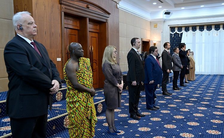 «We are determined to continue the general line with all countries to intensify political and diplomatic contacts, develop trade and investment, cultural and humanitarian cooperation. I hope that with the active participation of the ambassadors, interstate relations will be filled with new content, mutually beneficial projects, useful initiatives and, in general, develop dynamically for the benefit of the peoples of the countries, in the interests of international security and stability,» Sadyr Japarov said.