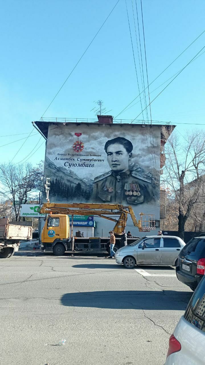 «Now everyone will know what street this is, who Akhmatbek Suyumbaev is. We are proud of ourselves. This is a cool mural. This was the first such complex face. And it’s difficult to do it at a height,» the authors said.