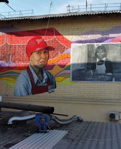 Murals-portraits made from bottle caps have appeared on the walls of high-rise buildings in Bishkek. DOXA Art Group member Sergei Keller posted on Facebook.