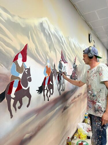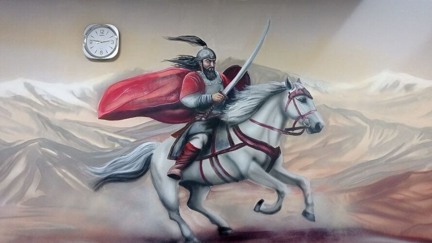 A mural on the theme of the Kyrgyz heroic epic appeared at Manas International Airport. One of its authors, Valery Katrevich, told 24-kg.com news agency.
