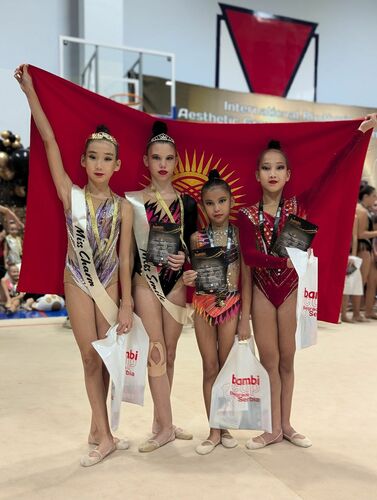The Kyrgyzstanis won a silver medal in aesthetic group gymnastics.