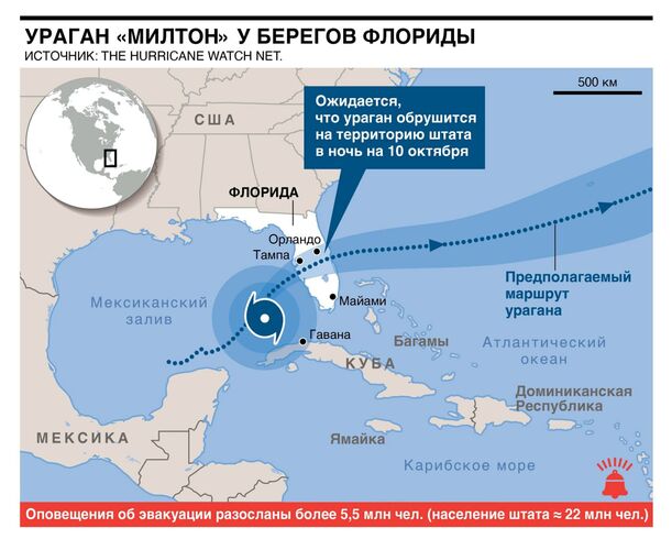 More than 5.5 million people are being evacuated in the United States due to the powerful Hurricane Milton. Florida Governor Ron DeSantis has called on residents to evacuate immediately due to Hurricane Milton approaching the coast. The New York Times reports, citing the Federal Emergency Management Agency.
