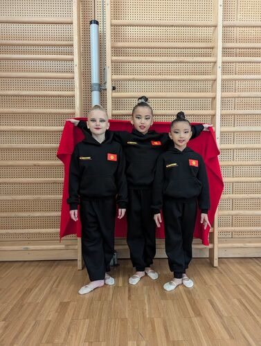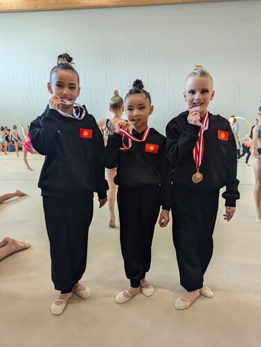 The gymnasts train at the Academy of Gymnastics Club and represent Yntymak Youth Sports School. Their coach is Elina Ratinova.