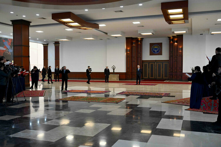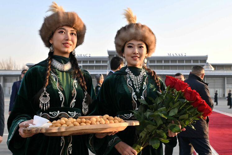 According to the press service, the leaders were welcomed at Manas International Airport by Chairman of the Cabinet of Ministers Adylbek Kasymaliev.