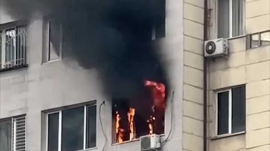 A fire broke out in an apartment in a high-rise residential building on Abdumomunov Street in Bishkek, eyewitnesses reported.