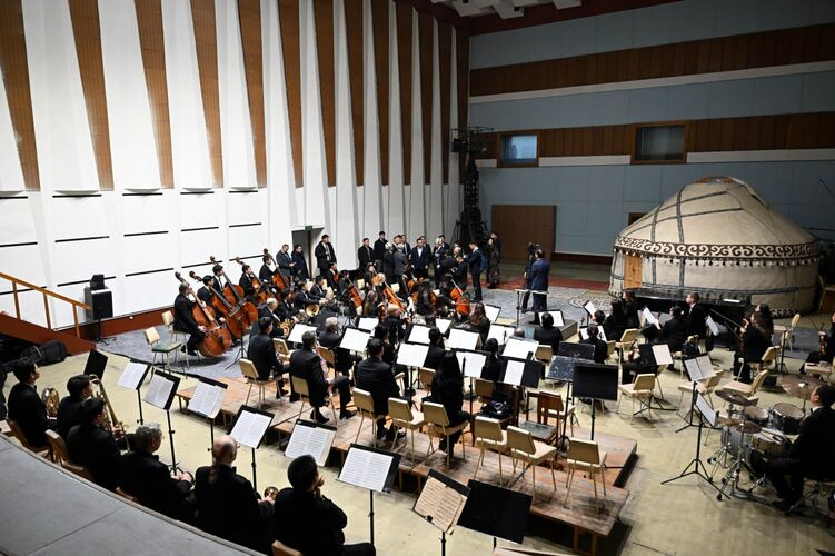 Significant changes have also been made to the interior functional spaces: the cafeteria has been expanded, and the old cinema, which had not been used for over ten years, has been converted into a modern, multifunctional conference room. A VIP room for receiving distinguished guests has also been renovated. The head of state toured NTRK’s updated infrastructure, inspecting the offices, live broadcast and recording studios, and the classical music recording hall, where he listened to a performance by the A. Dzhumakhmatov State Academic Symphony Orchestra.