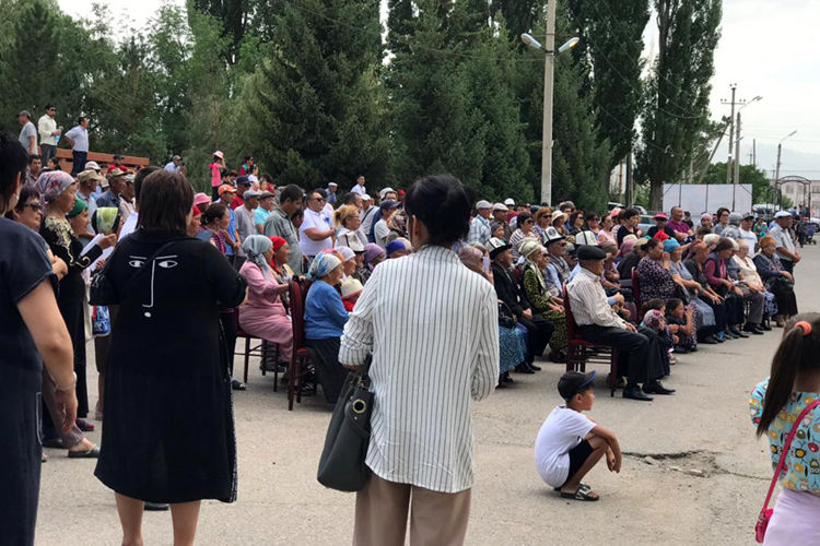 Катышуучулардын айтымында, 300гө жакын киши чогулду. Алар Сапар Исаковду эркиндикке кое берилишин талап кылышууда. Митинг айыл өкмөтүнүн имаратында өтүүдө.