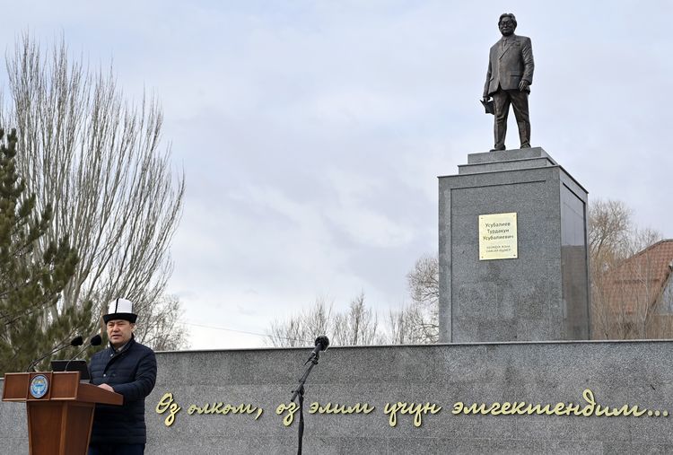 «Нечен кылымдарды башынан кечирген кыргыз элинин тарыхында жамы журттун намысын жогору койгон, өзүн күнүмдүк турмуштан жогору туткан, бүткүл өмүрүн өз элинин келечегине арнаган адамдар арбын болгон. Алардын бири — Турдакун Усубалиев», — деди Садыр Жапаров эстеликти ачуу аземинде.