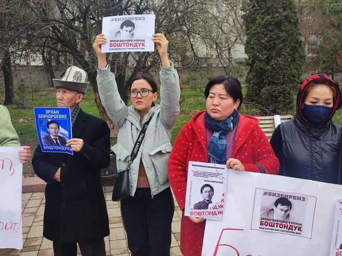 Кемпир-Абадды коргоо комитетинин мүчөлөрүн абактан бошотуу талабы менен митинг өттү.