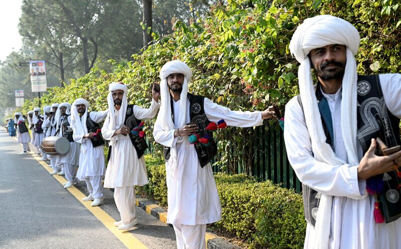 Президент Садыр Жапаровду Пакистандын премьер-министри Шахбаз Шариф тосуп алды. Саламдашуудан кийин эки өлкөнүн мамлекеттик гимндери аскердик оркестрдин коштоосунда жаңырды. Ардактуу кароол командири саламдашуу рапортун берди.