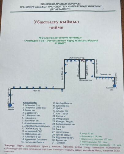 Бишкекте дагы бир автобустун каттамы өзгөрдү. Мэриянын басма сөз кызматы билдиргендей, 23-декабрдан тарта No2 электр автобусунун каттамы жарым-жартылай өзгөртүлөт.