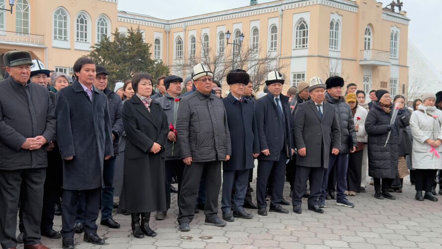 Иш-чаранын алкагында Жусуп Абдрахмановдун монументине гүлчамбар коюлду.