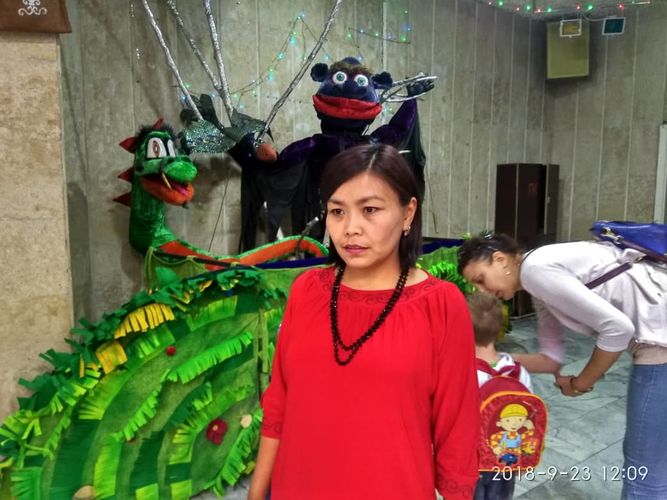 Театрдын имараты Союз кулаган жылдары салынып, 1991-жылы киргенбиз. Азыр тегерек чети оңдоого муктаж, үстүнөн суу тамат. Директор Болотбек Куланбаев жардам бергиле деп тийиштүү жерлерге кайрылып атат. Жарыктандыруу жагы дагы начар. Негизи театрда балдарга жомок сыяктуу сезим калтыруу үчүн жарыкты туура бериш керек, бирок бизде бул жагы аябай начар. Анан эле калемсап же кагаз алсаң да тендер деп турушат. Чоң нерсе алсаң тендер кылса болот, бирок, күнүмдүк жашоого керек нерселер тендер келбей жатат деп кечигет.