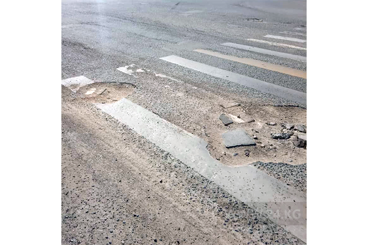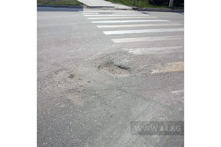 На недавно отремонтированных в Бишкеке улицах Ауэзова и Чолпон-Атинской уже появились ямы. Об этом 24-kg.com сообщил читатель.