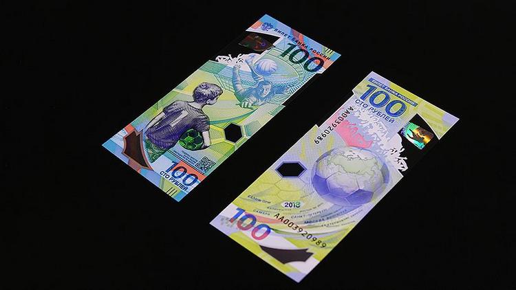 Фото РИА Новости/Кирилл Каллиников. Сторублевая купюра, выпущенная к чемпионату мира по футболу
