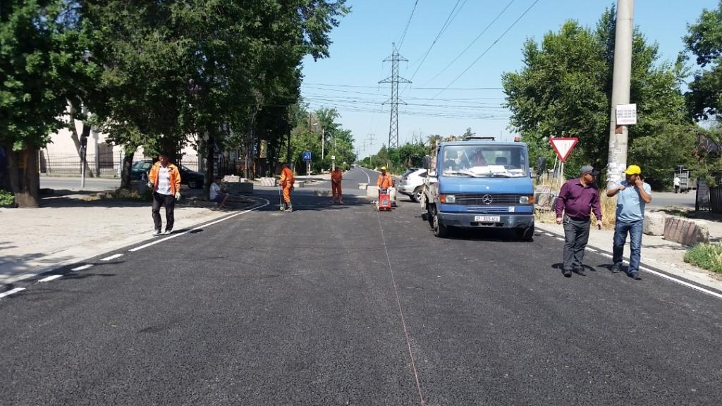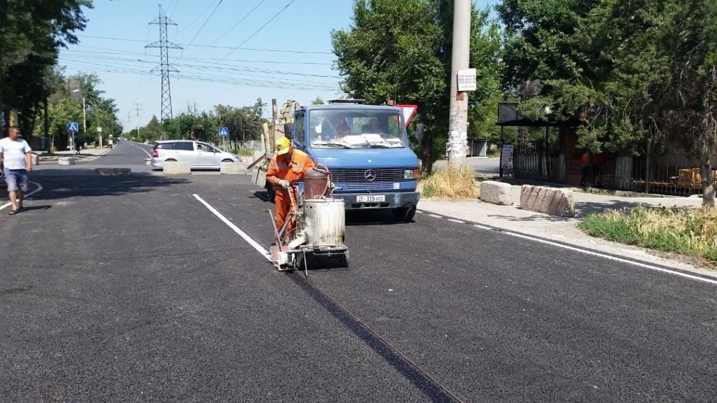 «На улице Нуркамал начали укладывать верхний слой дорожного покрытия. Он щебеночно-мастичный, повышенной прочности. На улице Алтымышева работы близятся к завершению, здесь приступили к нанесению дорожной разметки. Также реконструкция идет на улицах Репина и Жайыла Баатыра. На всех дорогах работы идут с опережением графика. Их планируется завершить до 15 июня», — отметили в мэрии.