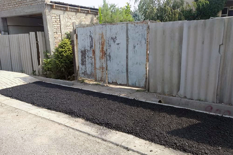 На участке улицы Репина между Гагарина и Куюкова появился и тротуар, хотя он не заложен в проект «Восстановление дорожного покрытия автомобильных дорог Бишкека», по которому проводились работы.