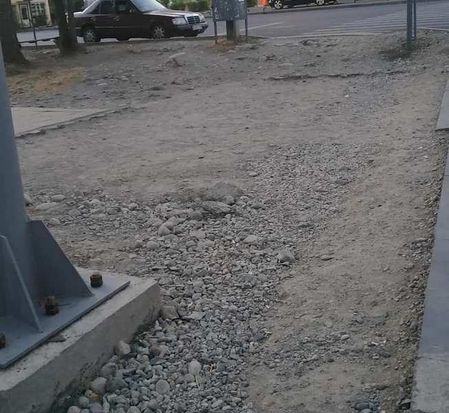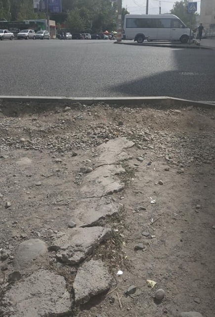 «Торчащие камни, арматура и выкорчеванный бордюр остались «украшать» перекресток. В этом году отремонтировали улицу Нуркамал. А столб и ныне там. И колдобины. Бордюр убрали, правда, а остатки бетона — нет. Недавно здесь упала девушка, торопившаяся на работу. Она споткнулась о многочисленные камни и упала на колени, сумочка улетела под колеса маршрутки. Люди помогли ей подняться. А ведь это мог быть пожилой человек, у которого хрупкие кости, сломал бы шейку бедра, и все», — написала она.