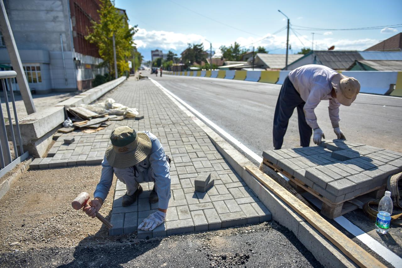 По ее данным, уже полностью уложено асфальтобетонное покрытие — как на проезжей части, так и на тротуарах. Сейчас наносят дорожную разметку и устанавливают дорожные знаки, регулирующие движение на повороте с улицы Токтоналиева на улицу Медерова.