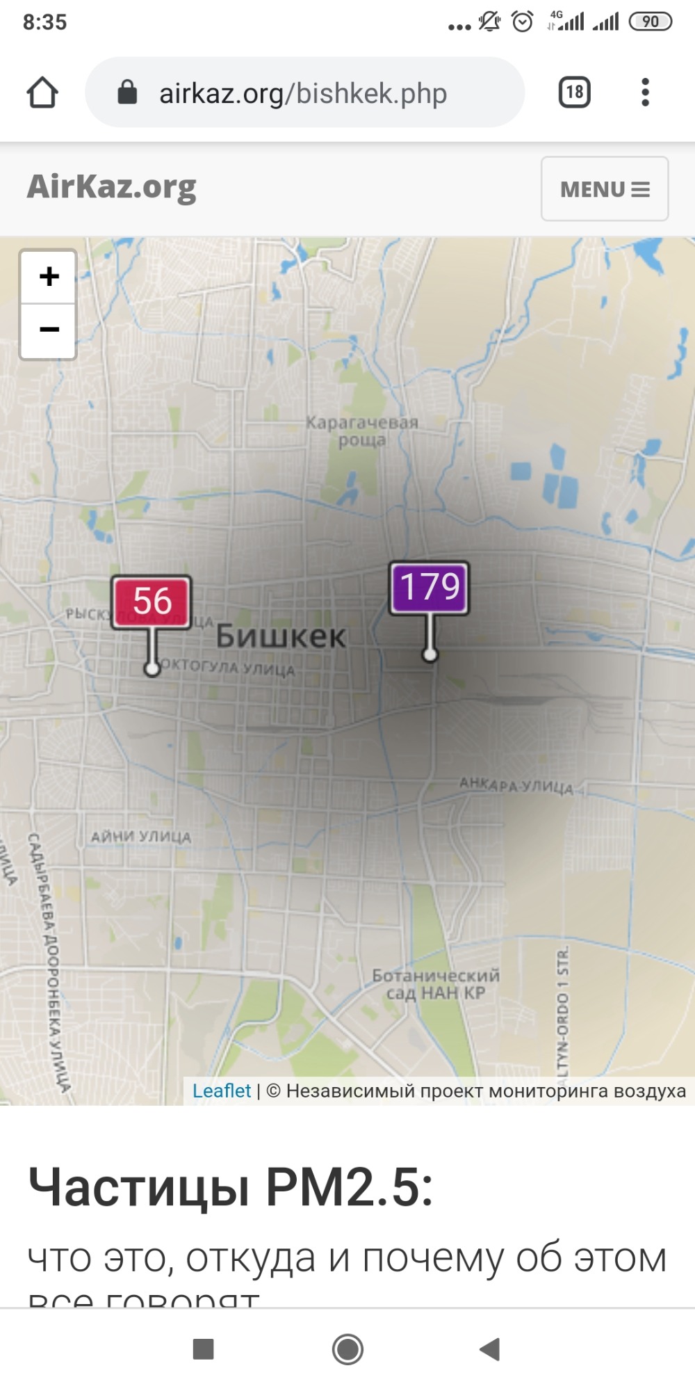 - микрорайон «Восток-5». Уровень загрязнения превышен в четыре раза: PM2.5 среднесуточный — 141 мкг/м³, на момент измерения — 179 мкг/м³.