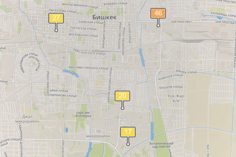Экологическое движение «МувГрин» установило несколько датчиков в столице, которые замеряют содержание мелких частиц РМ2.5 в воздухе. Результаты замеров можно наблюдать в режиме реального времени.