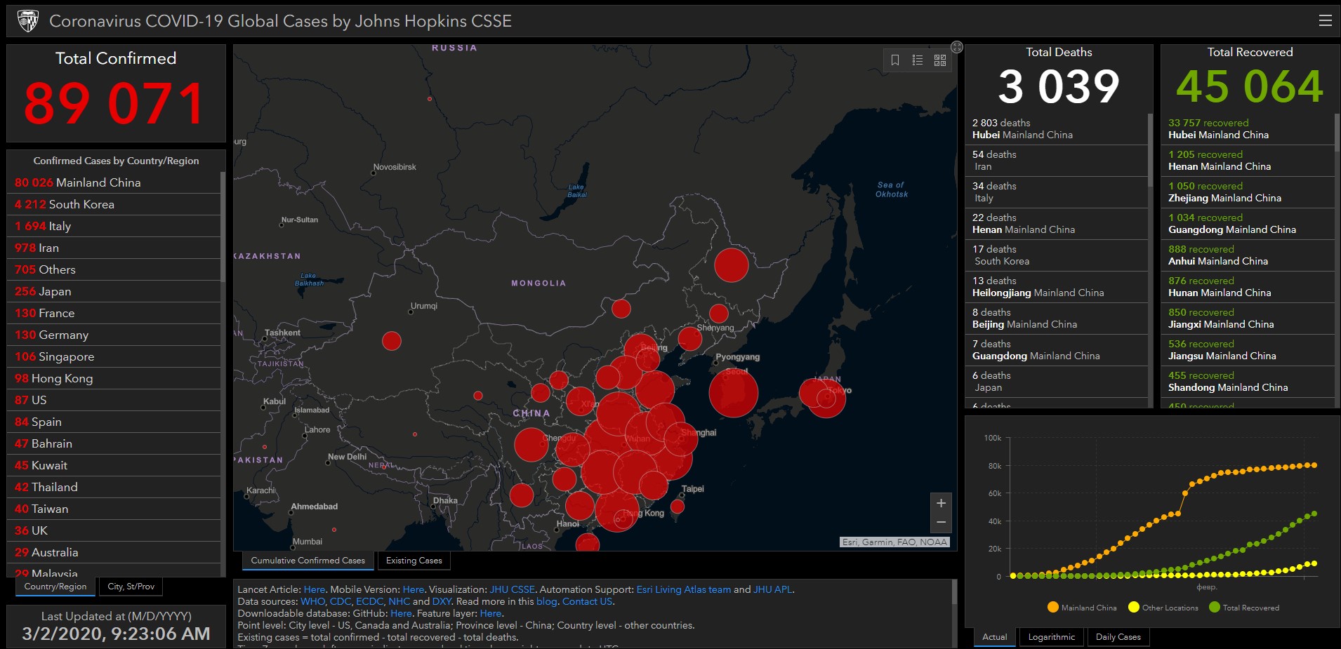 Число людей, которые умерли после заражения новым коронавирусом, достигло 3 тысяч 39 человек. Об этом свидетельствуют данные онлайн-карты, разработанной учеными.