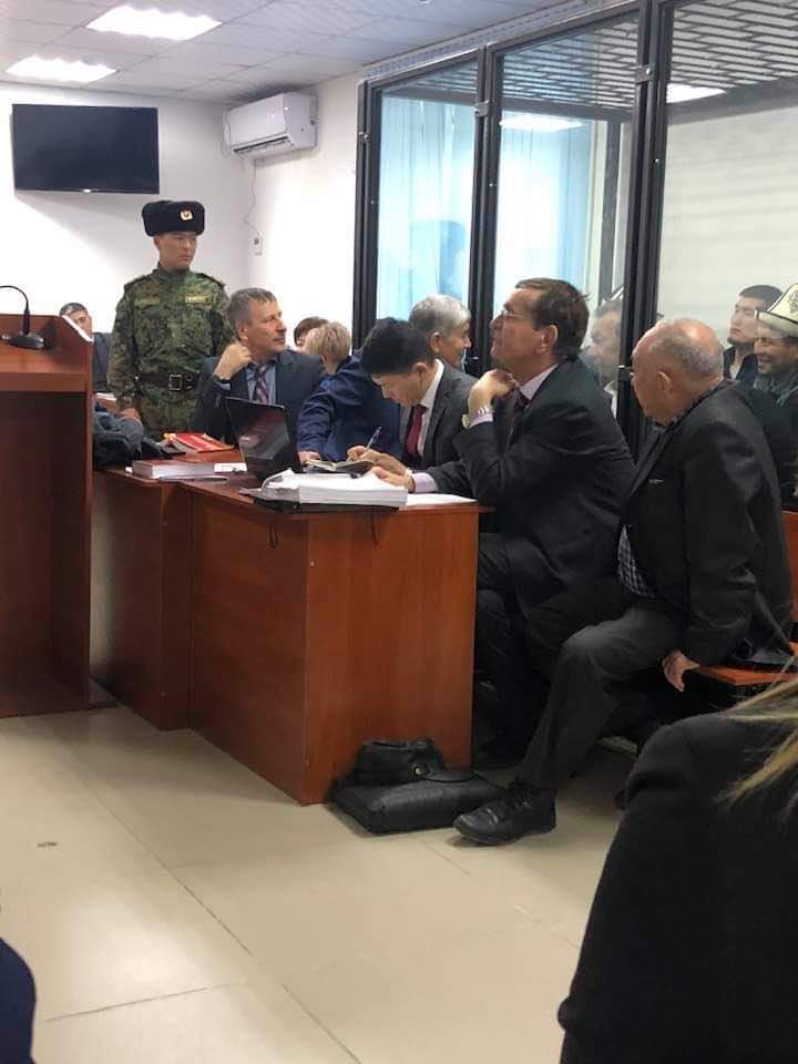 На фото видно, что в зале действительно тесно, не все адвокаты поместились за стол.По событиям в Кой-Таше 7-8 августа МВД возбудило дело по ряду статей Уголовного кодекса. Следствие завершено. Бывшему президенту и его сторонникам предъявлены обвинения по нескольким статьям: «Массовые беспорядки», «Хулиганство», «Убийство», «Покушение на убийство», «Угроза или насилие в отношении представителя власти», «Попытка насильственного захвата власти», «Незаконный оборот оружия» и «Захват заложников» УК КР.
