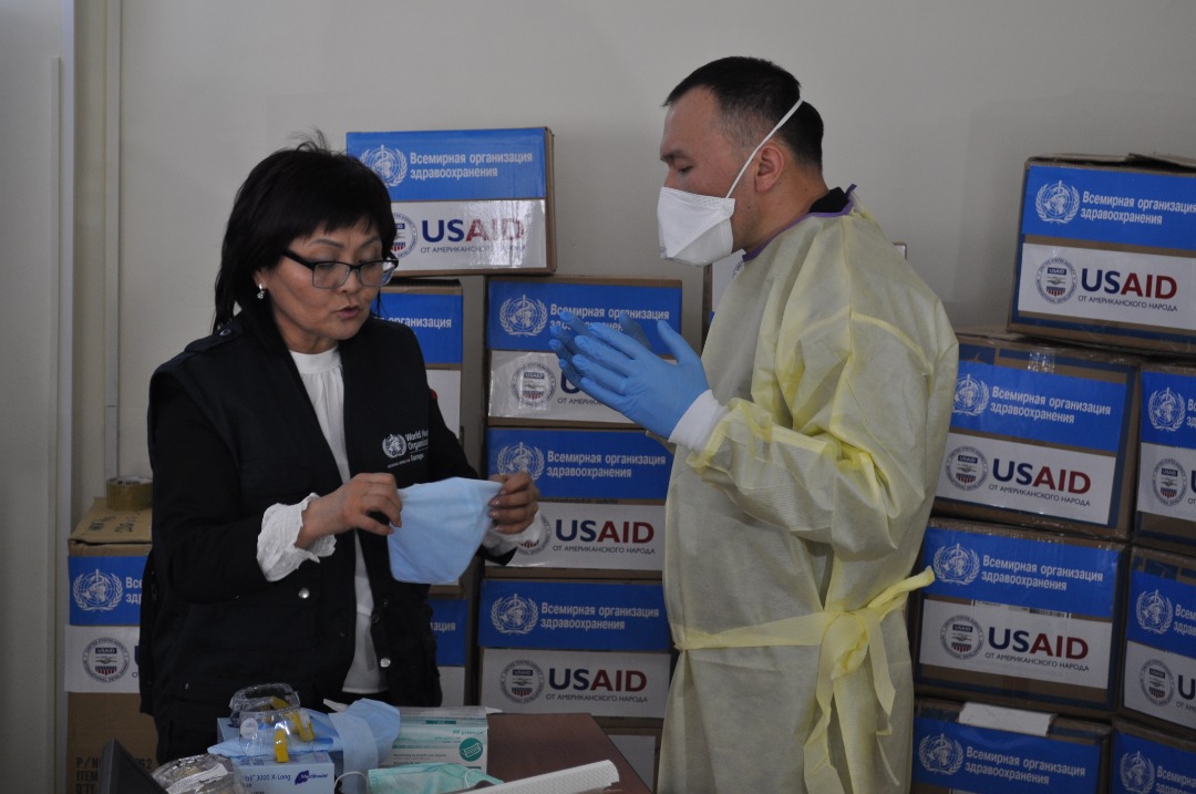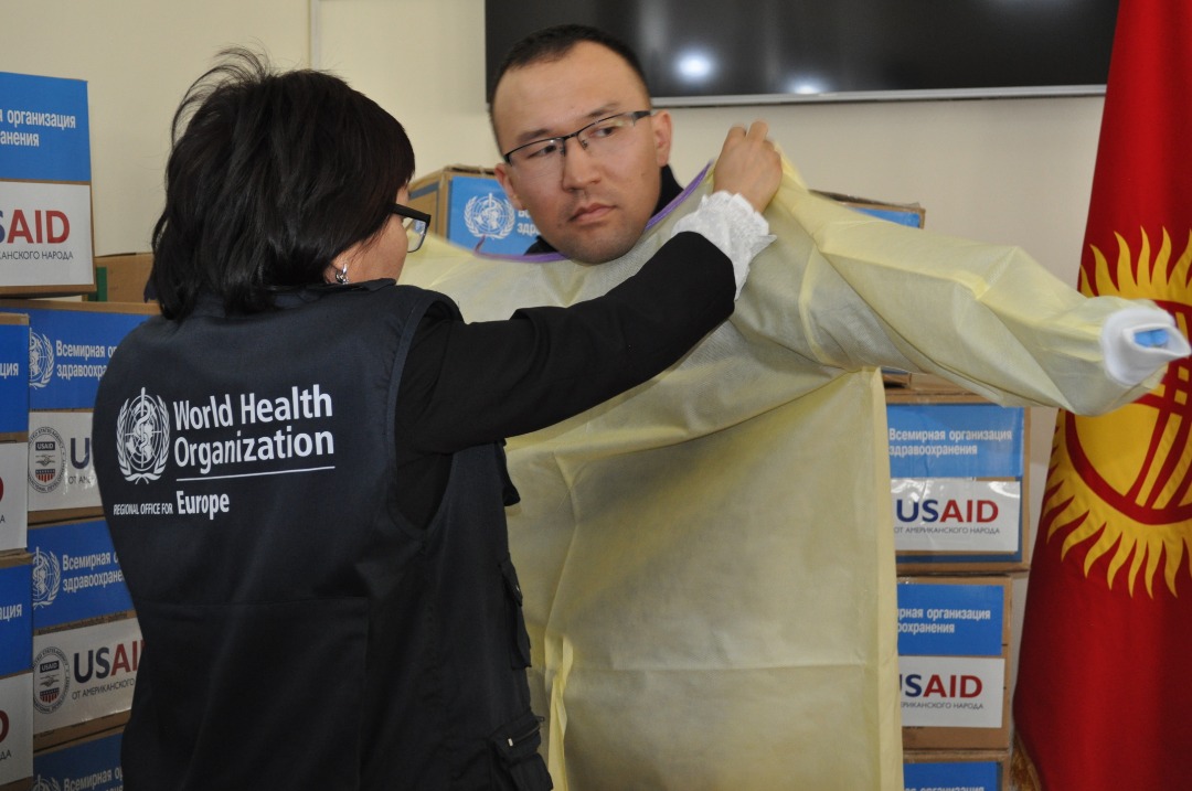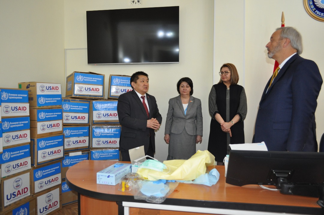Агентство США по международному развитию и Всемирная организация здравоохранения (ВОЗ) передали средства индивидуальной защиты Минздраву Кыргызстана. Об этом сообщили в пресс-центре ведомства.