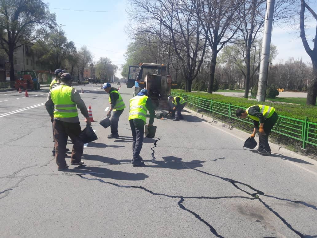Сотрудники Бишкекасфальтсервиса обновляют разметку на столичных улицах. Об этом сообщили в пресс-службе столичной мэрии.