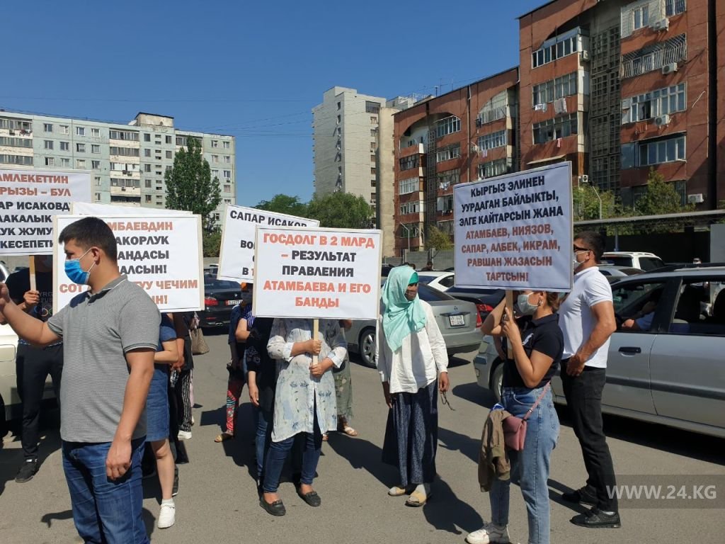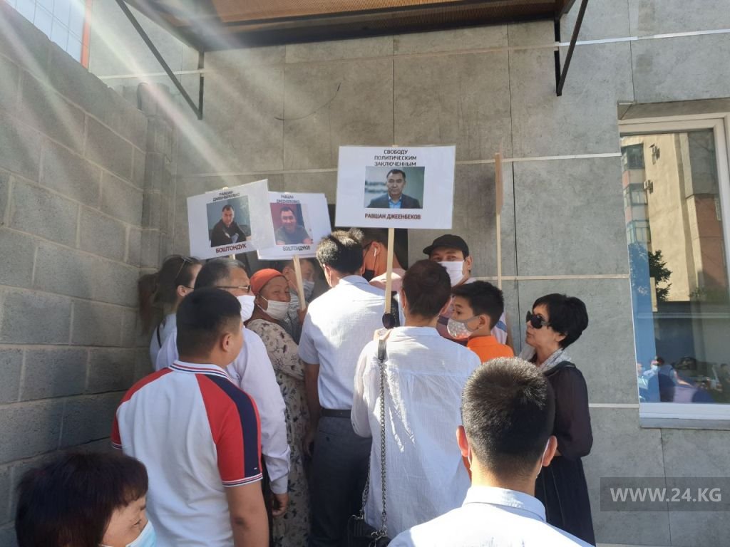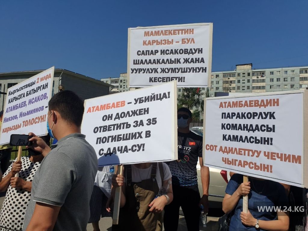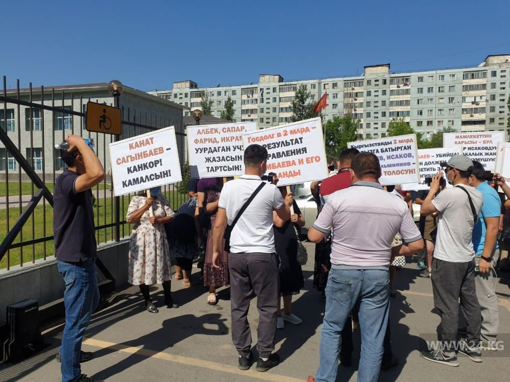 В Бишкеке у здания Первомайского районного суда проходит митинг против бывшего президента страны Алмазбека Атамбаева.