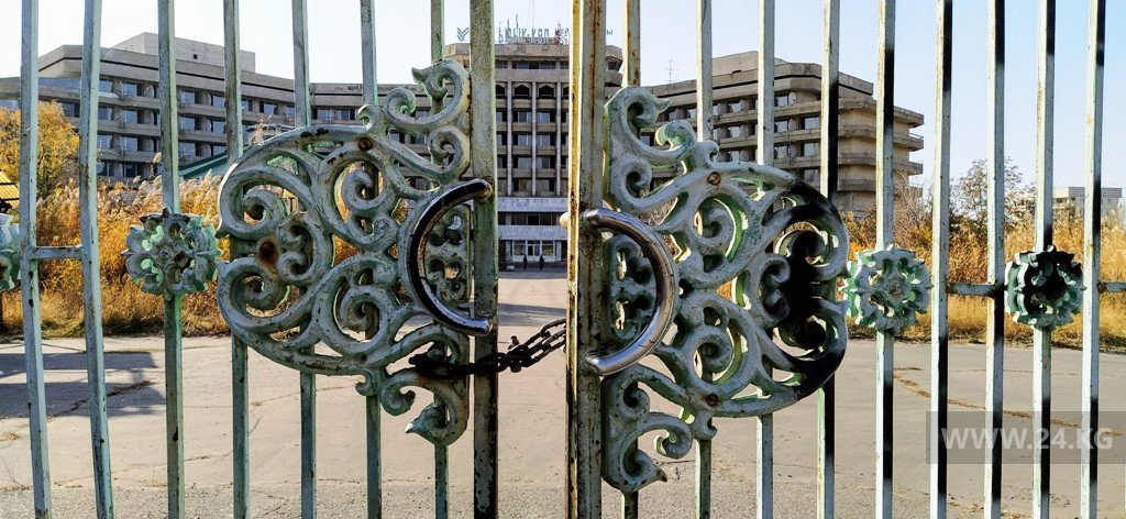Тяжелые стальные ворота, украшенные национальным орнаментом, прежде распахивались для высокопоставленных гостей республики и правительственных делегаций. Сегодня центральный въезд в гостиничный комплекс закрыт на замок. Территория вокруг «Иссык-Куля», а это больше 3,5 гектара земли, — заброшена.