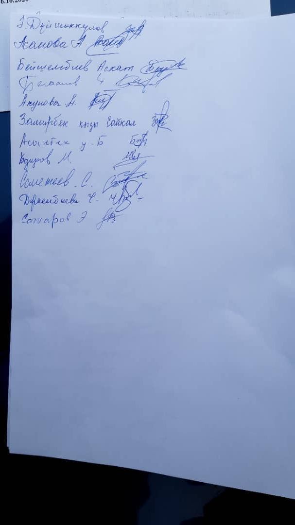 Журналист также отметил, что если Садыр Жапаров не решит их вопрос, они будут вынуждены обратиться в Конституционную палату Верховного суда, чтобы отменить указ о назначении Шатмановой. К своему посту Сакыбаев приложил снимки с подписями коллег, несогласных с кандидатурой нового директора.