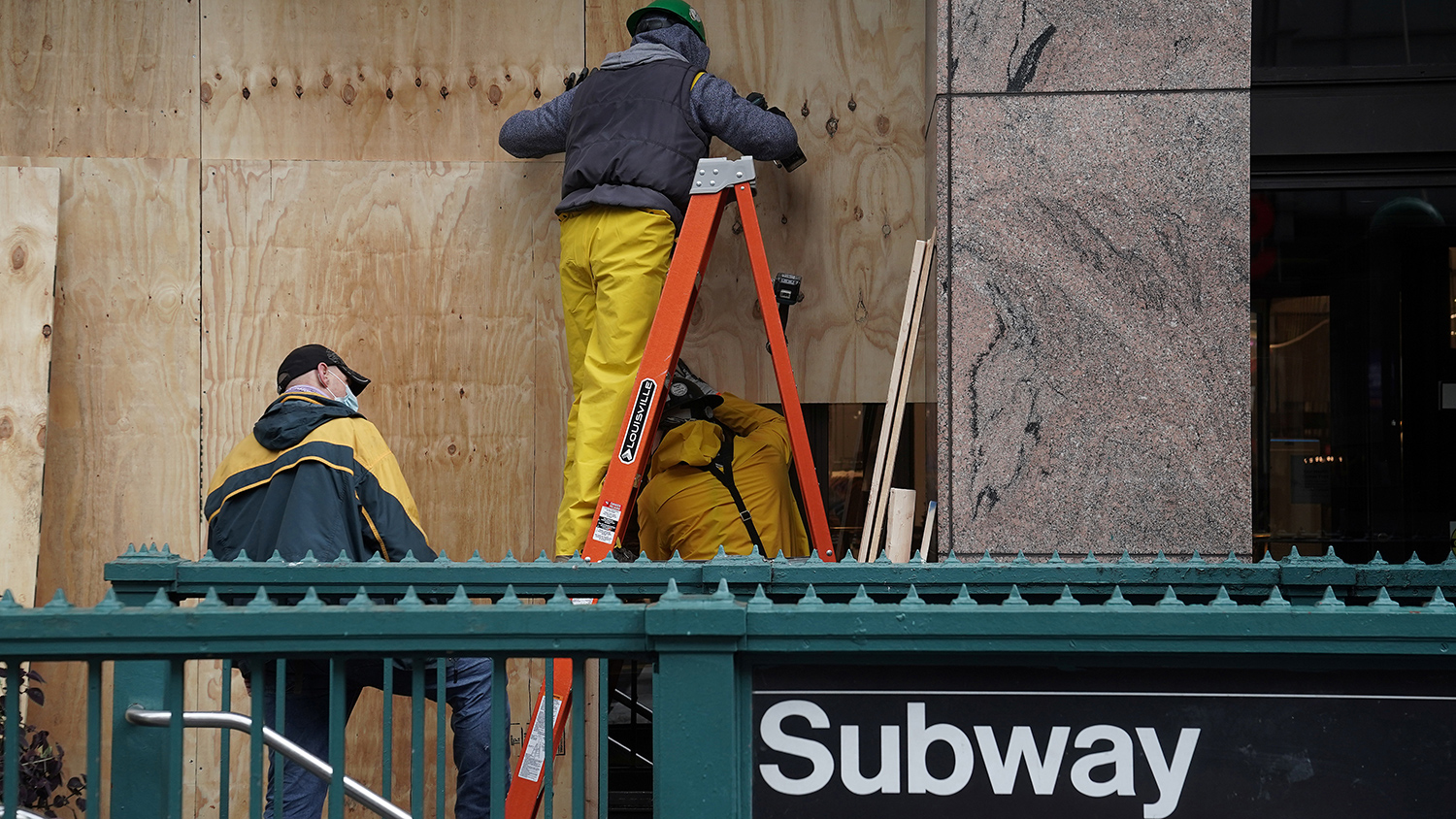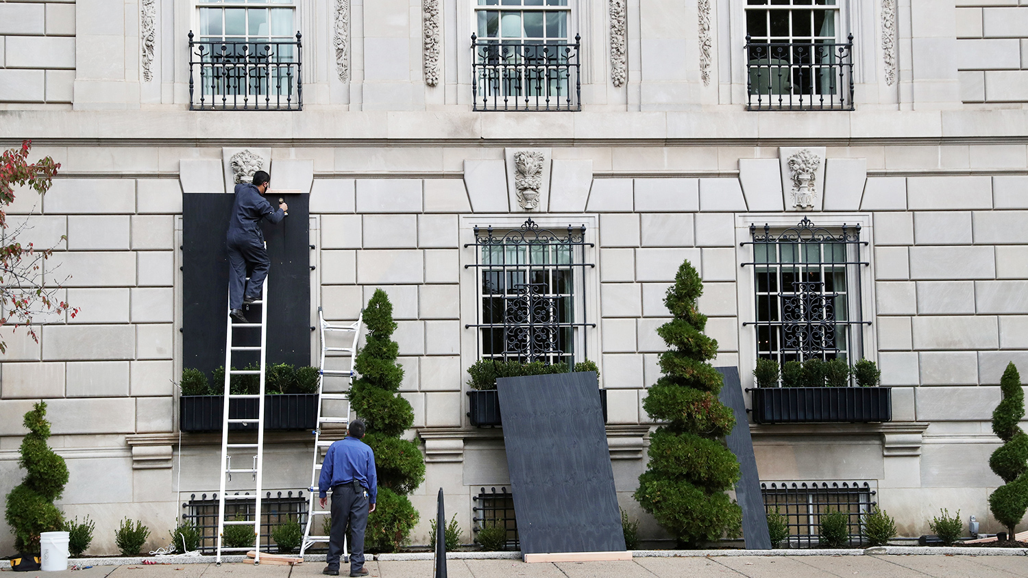 Закрывают витрины дорогих бутиков на 5-й и 7-й авеню. Огорожена железным забором территория вокруг небоскреба Trump Tower, вход в башню охраняют полицейские с пистолетами-пулеметами и в защитных шлемах.