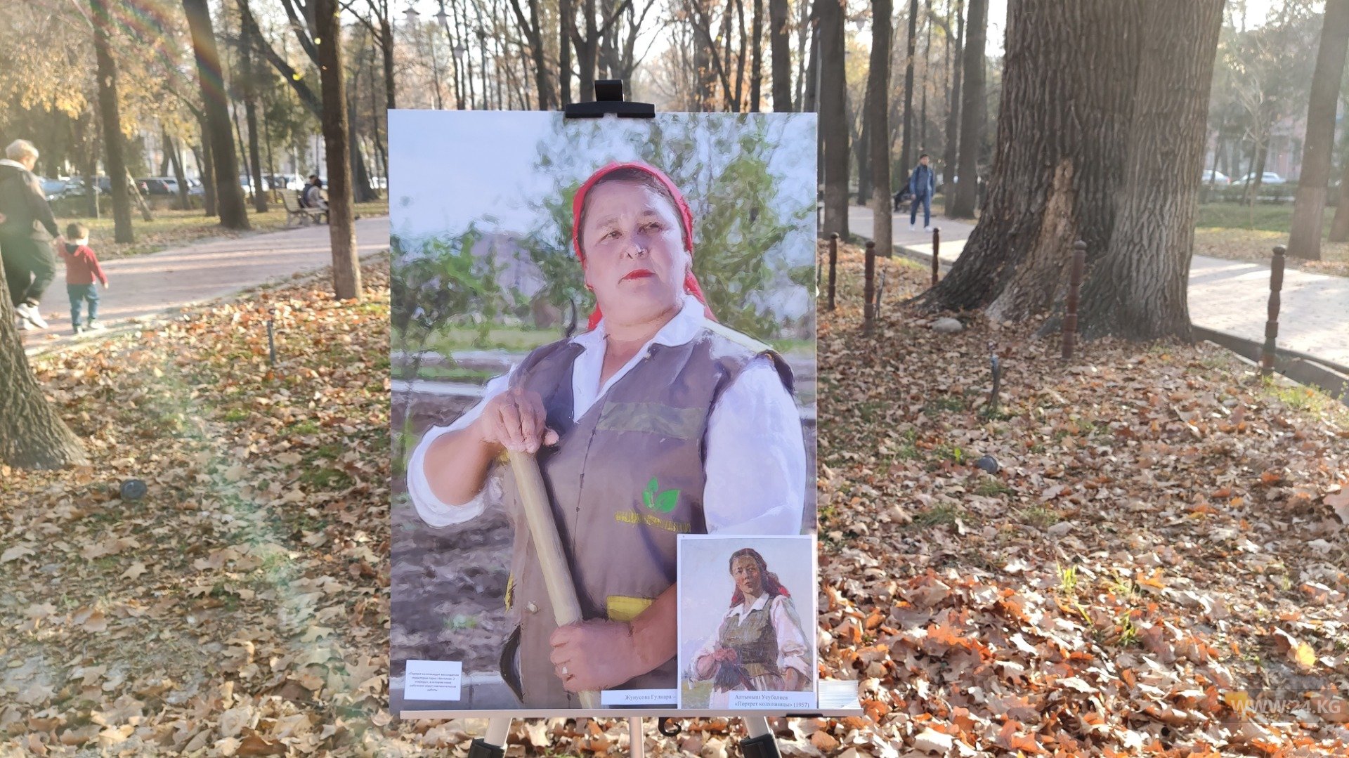 В Бишкеке на бульваре Эркиндик состоялась выставка картин, на которых сотрудники Бишкекзеленхоза предстали в образах известных персонажей работ отечественных художников.