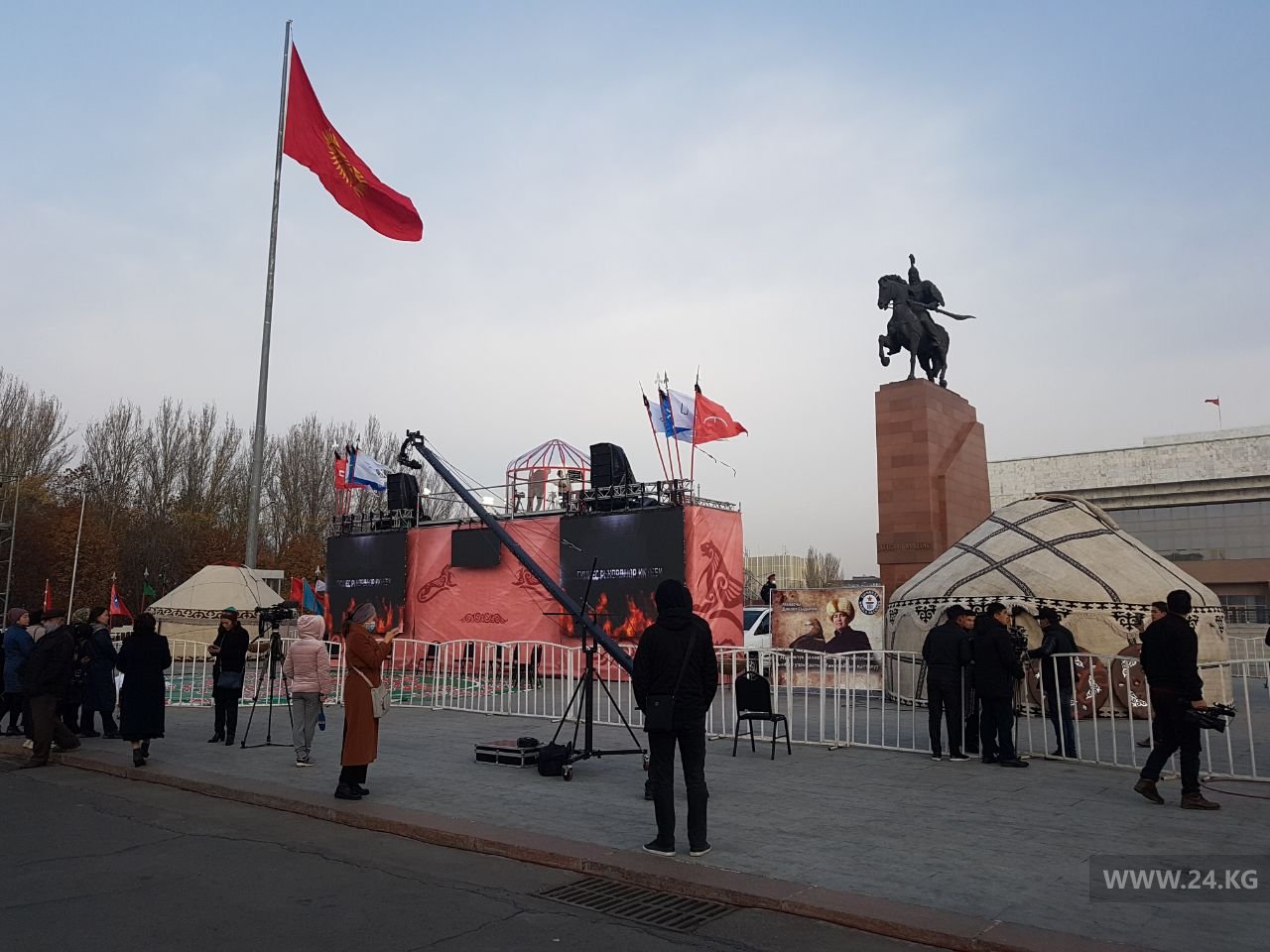 На центральной площади Ала-Тоо манасчи Доолот Сыдыков начал рассказывать эпос, чтобы попасть в Книгу рекордов Гиннесса.