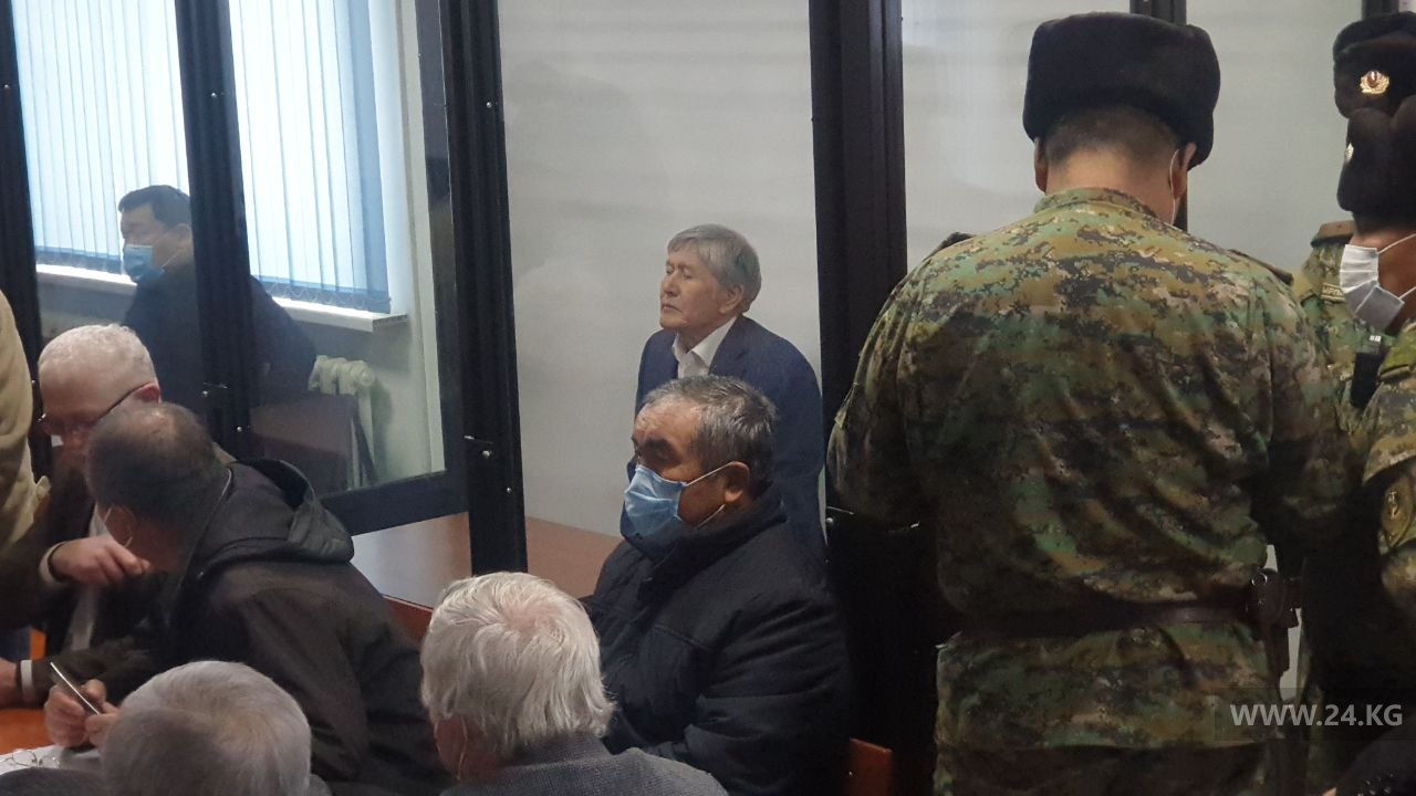 Алмазбека Атамбаева доставили в зал судебных заседаний. Ему позволили поздороваться с родственниками.