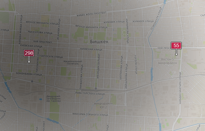 - в районе улиц Московской/Уметалиева. Уровень загрязнения превышен в 5,86 раза: PM2.5 среднесуточный — 205 мкг/м³, на момент измерения — 298 мкг/м³;