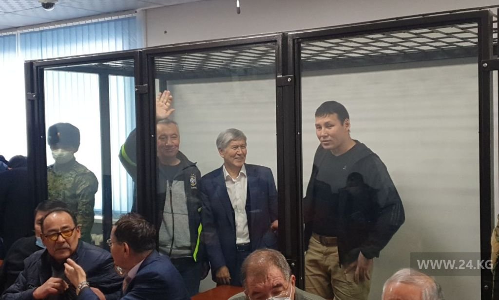 Главного обвиняемого доставили в зал заседаний. Кроме него в суде присутствуют экс-руководитель аппарата президента Фарид Ниязов, бывший сотрудник Девятой службы ГКНБ Канат Сагымбаев и другие подсудимые по делу о событиях в селе Кой-Таш 7-8 августа 2019 года.