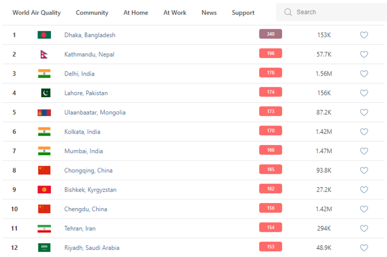 В 9.30 статус города отмечен как «нездоровый» (Unhealthy). Индекс качества воздуха, по данным сайта, составляет 162 (AQI).