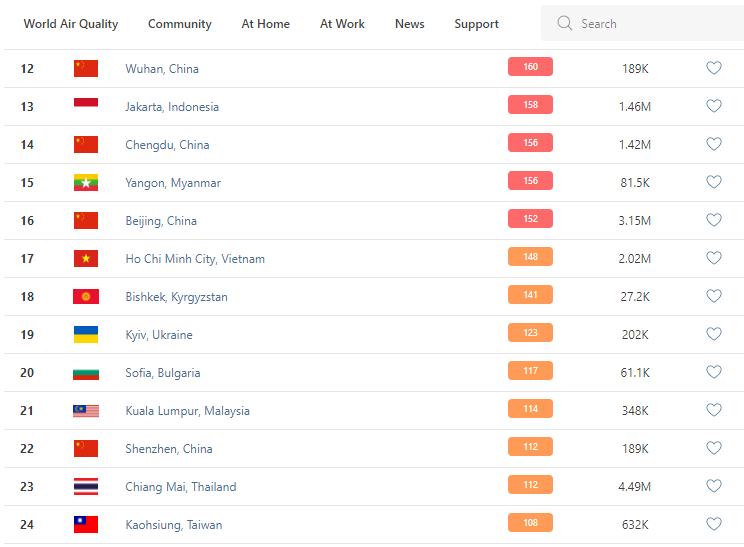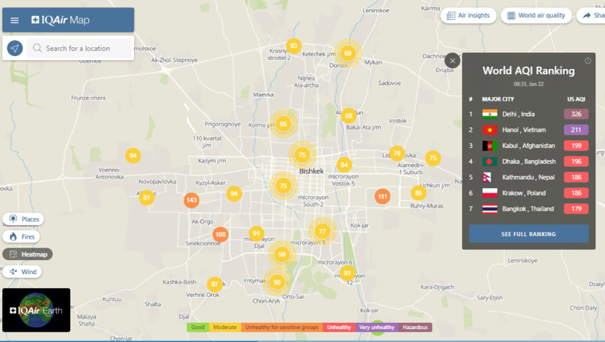 В рейтинге крупнейших городов мира по качеству воздуха World Air Quality Бишкек поднялся на 18-е место.
