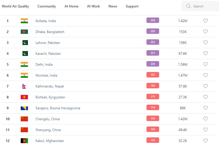 В 8.30 статус города отмечен как «нездоровый» (unhealthy). Индекс качества воздуха, по данным сайта, составляет 175 (AQI).