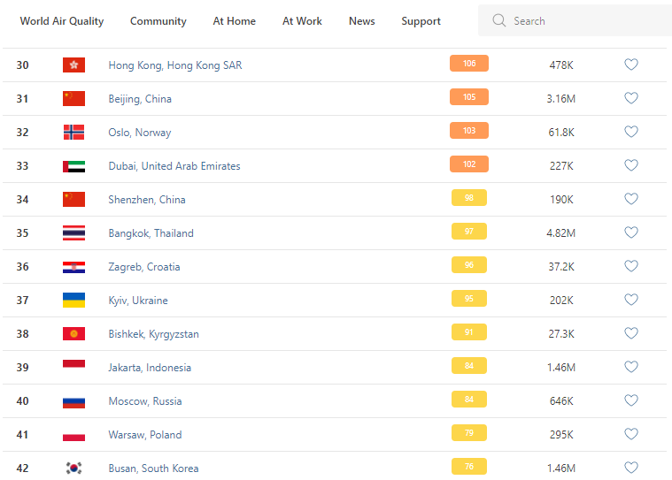 В рейтинге крупнейших городов мира по качеству воздуха World Air Quality Бишкек опустился на 38-е место.
