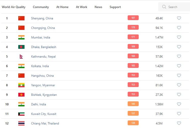 В 19.30 статус города отмечен как «нездоровый». Индекс качества воздуха, по данным сайта, составляет 153 (AQI).