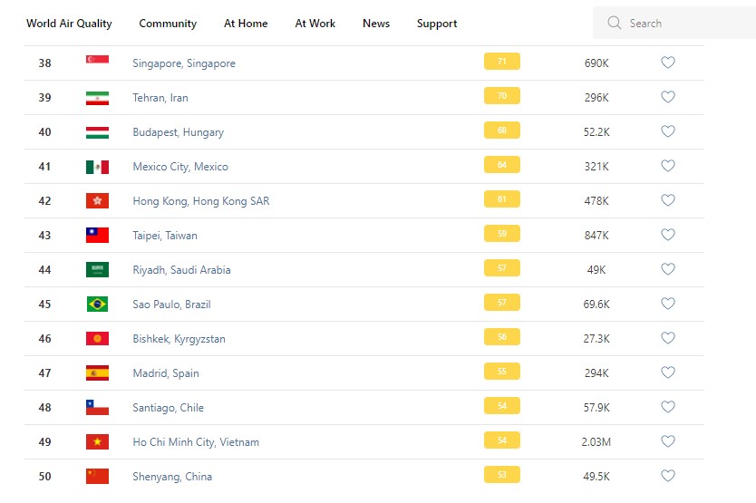 В рейтинге крупнейших городов мира по качеству воздуха World Air Quality Бишкек опустился на 46-е место.