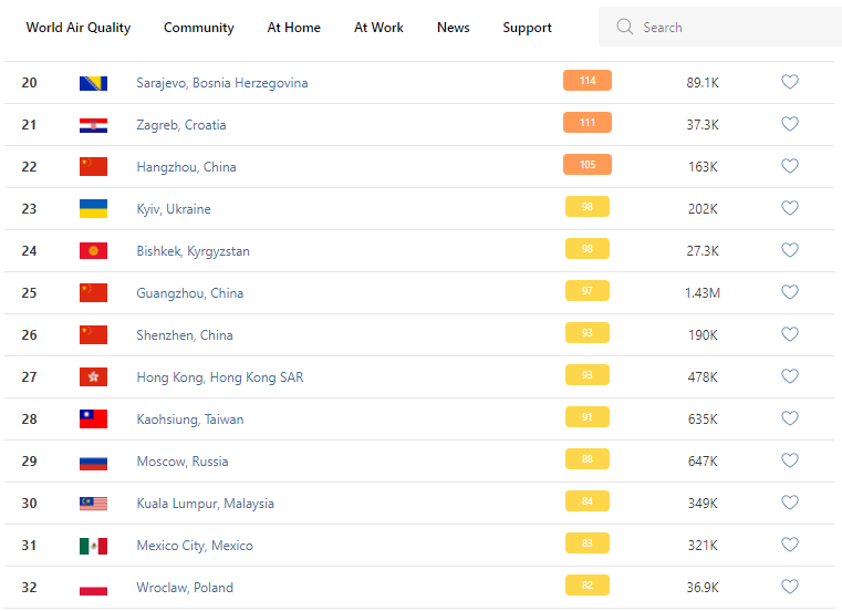 В рейтинге крупнейших городов мира по качеству воздуха World Air Quality Бишкек находится на 24-м месте.