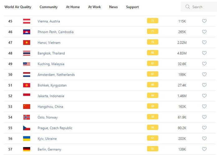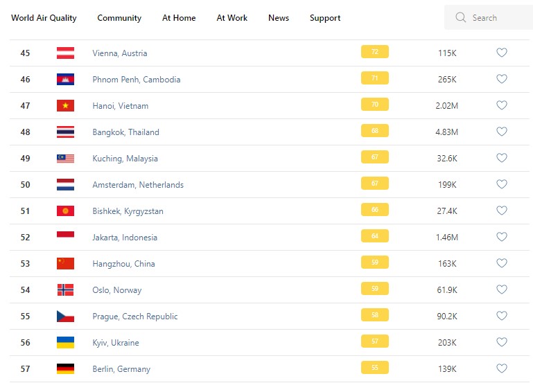 В рейтинге крупнейших городов мира по качеству воздуха World Air Quality Бишкек поднялся на 51-е место.