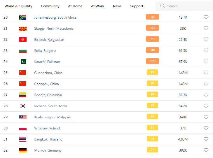 В рейтинге крупнейших городов мира по качеству воздуха World Air Quality Бишкек поднялся на 22-е место.
