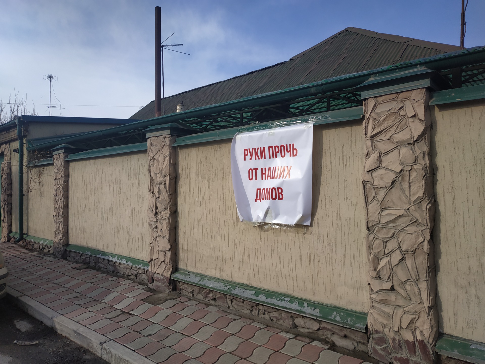 «Две недели назад к нам на улицу пришли два представителя акимиата и поставили в известность, что с 1 мая начнется реконструкция, будет двусторонняя автострада с тротуарами 16 метров шириной, а через канал построят мост. Нам сказали, что будут сносить заборы, якобы мы зашли на муниципальную территорию», — отметила местная жительница Нургуль Койчуманова.